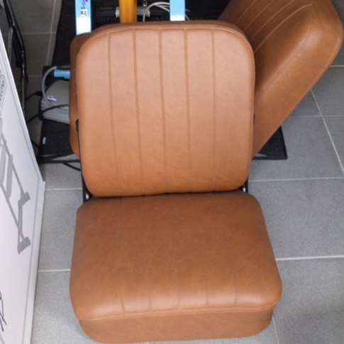“Done”, you say? Hardly. With a fresh look, the bus was back in my garage, but still stripped of anything. As I think of it, by then came the hardest part. A windscreen broke (we found it after a long online search and equally long car ride), the steering column broke (we went to Germany to get a replacement and this trip alone is worth a blog), headlights, logos, etc, etc, etc. We were thrilled when we even found a grill somewhere in Germany. On one of our many ‘part-trips’ we found the original chairs, which we could take for free, because “they were beyond repair anyway”. They were wrong and we were lucky. On many occasions.